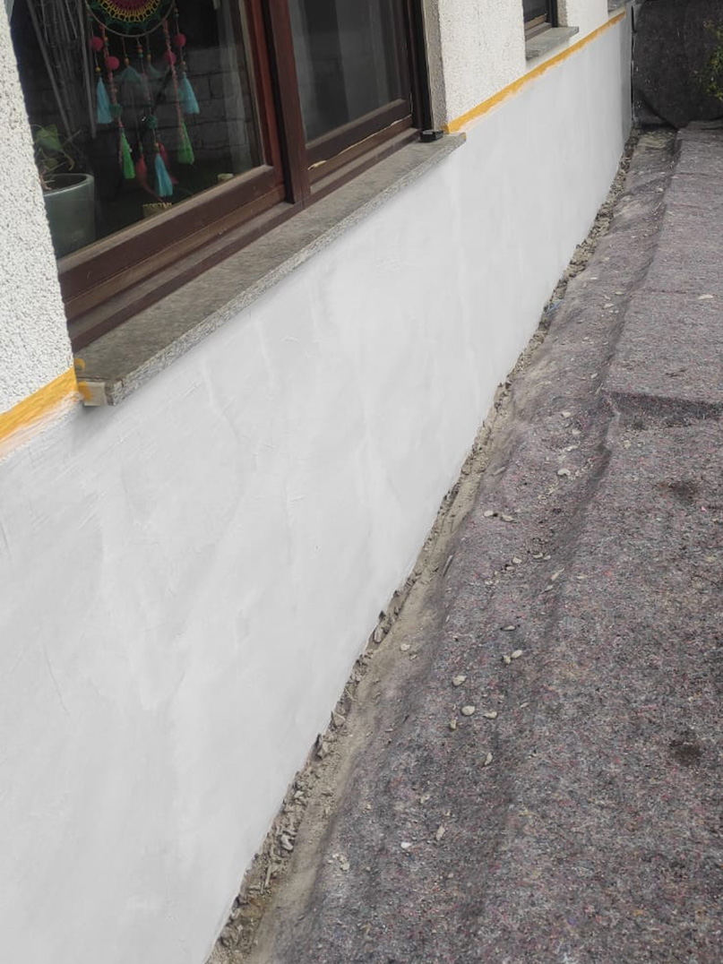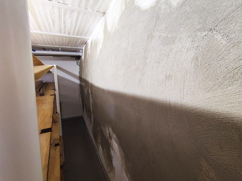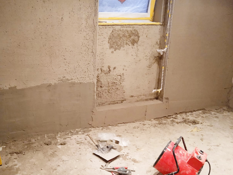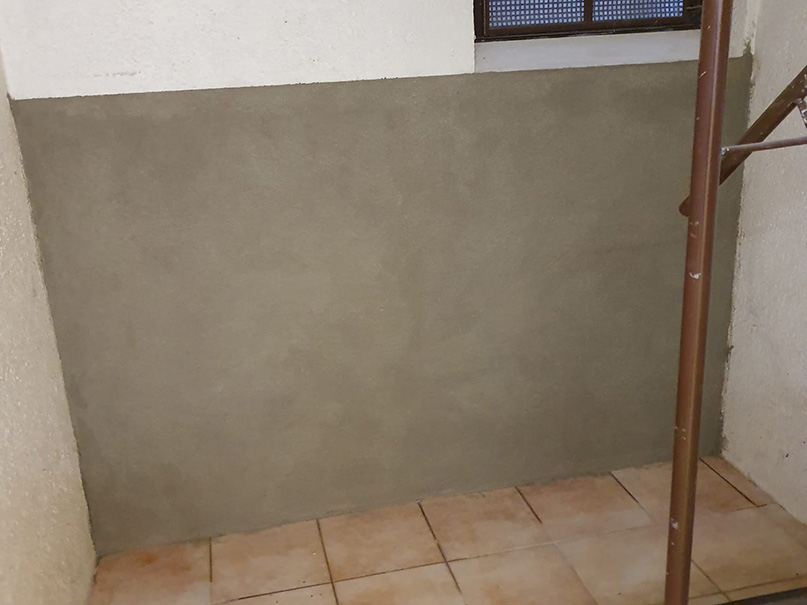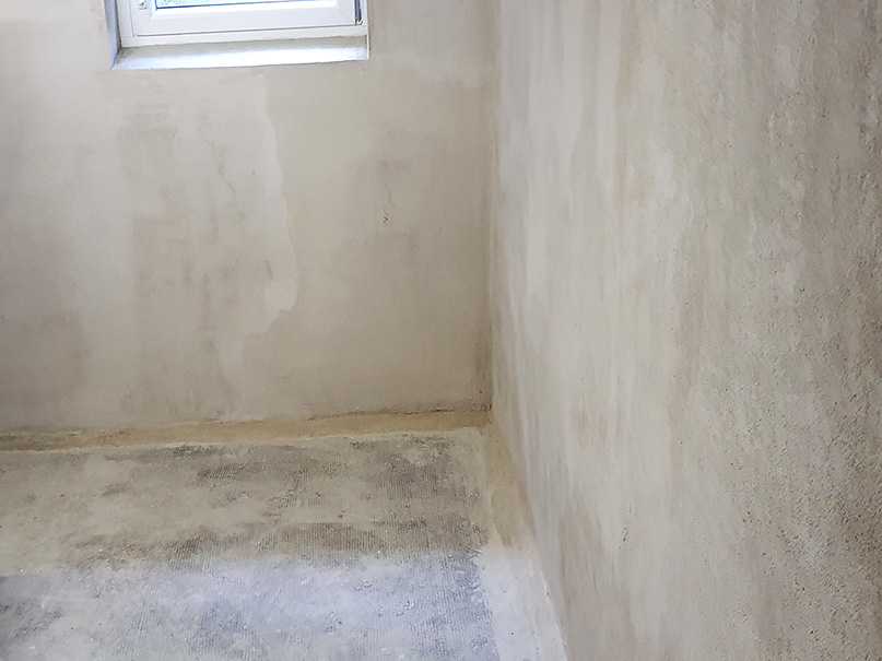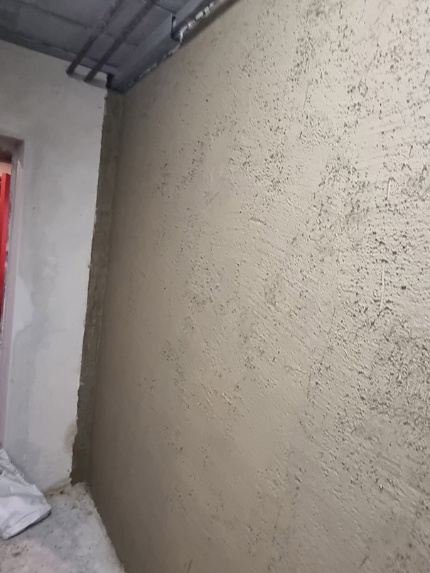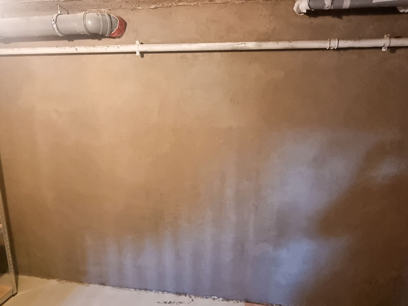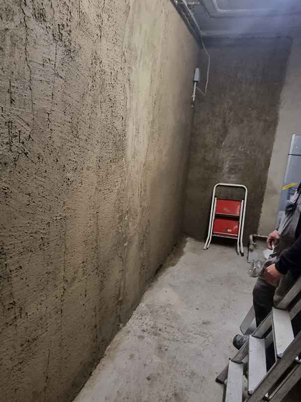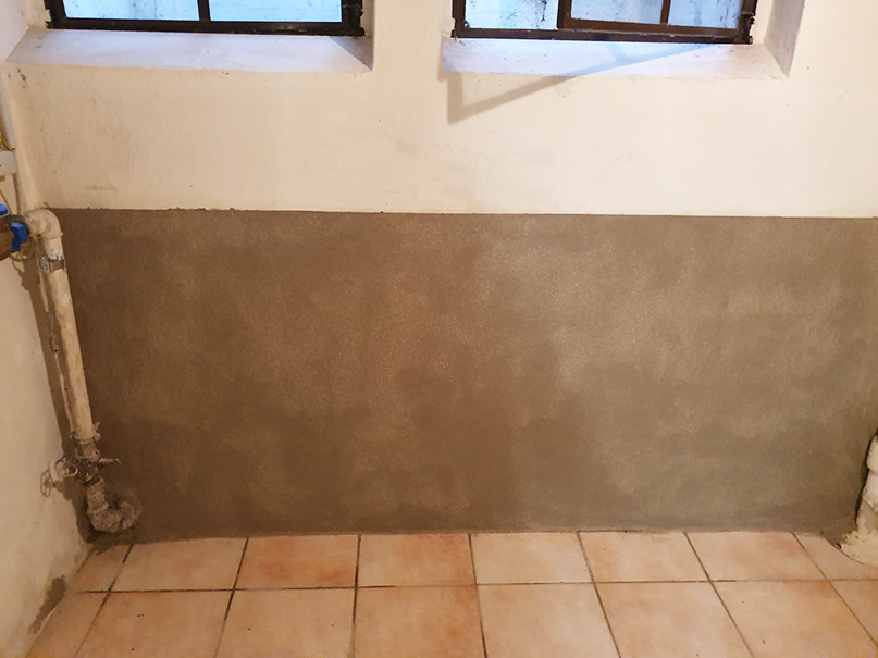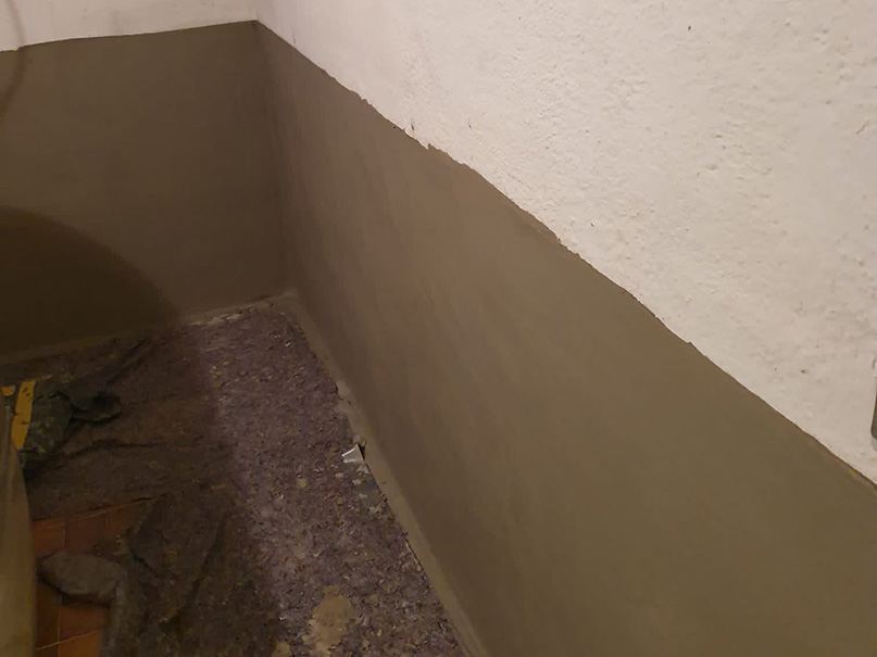 340,00 m² Negativsperre/Sperrputz. Negativabdichtung besteht aus einem speziellen Mehrschichtsystem aus Dichtschlämme, Vorspritzmörtel und Sperrputz.