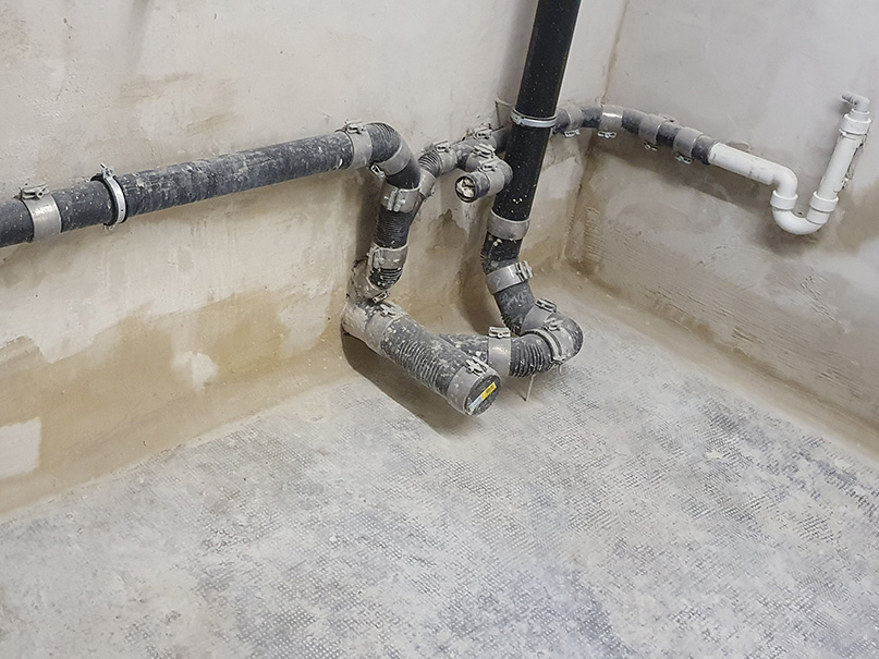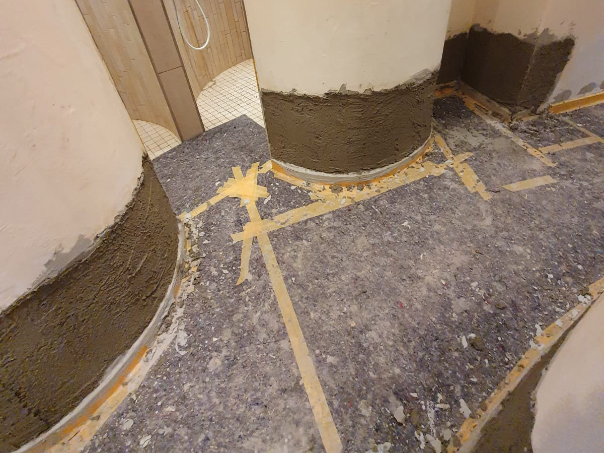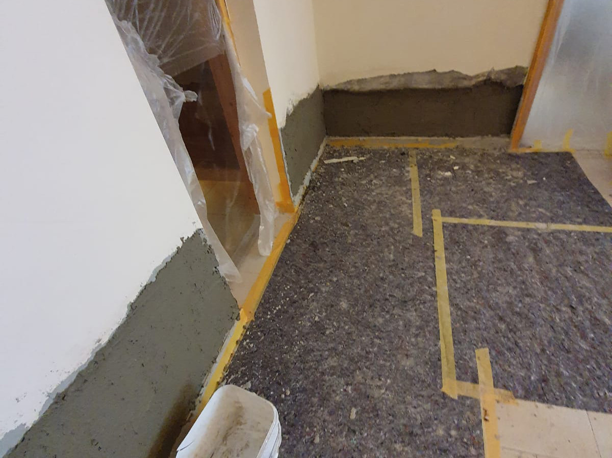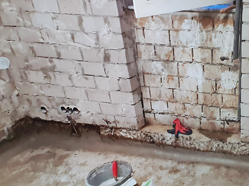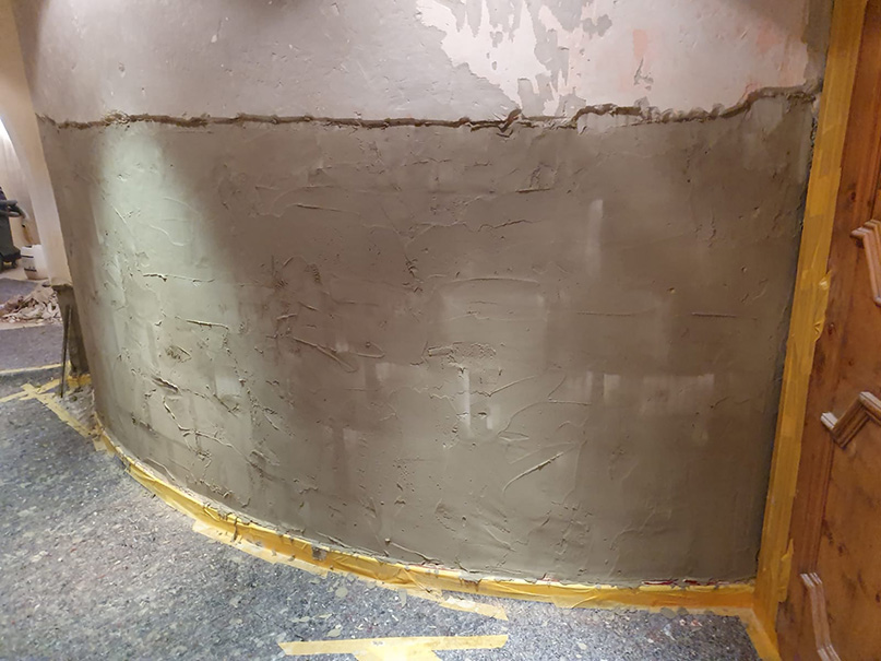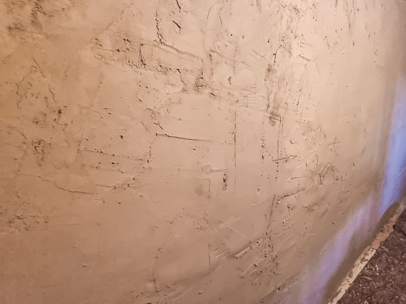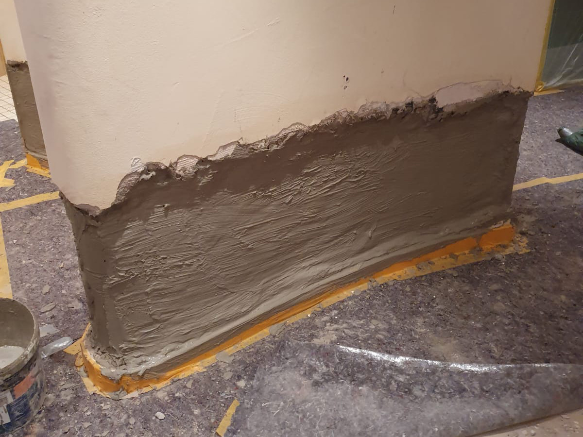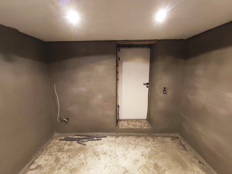 340,00 m² Negativsperre/Sperrputz. Negativabdichtung besteht aus einem speziellen Mehrschichtsystem aus Dichtschlämme, Vorspritzmörtel und Sperrputz.