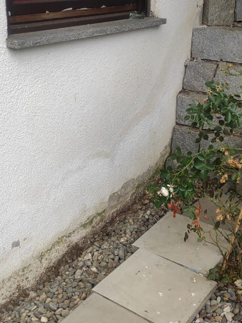 Bei dieser Immobilie traten trotzdem Feuchtigkeitsschäden auf, die wir, ohne den Garten auszuschachten, beheben konnten.