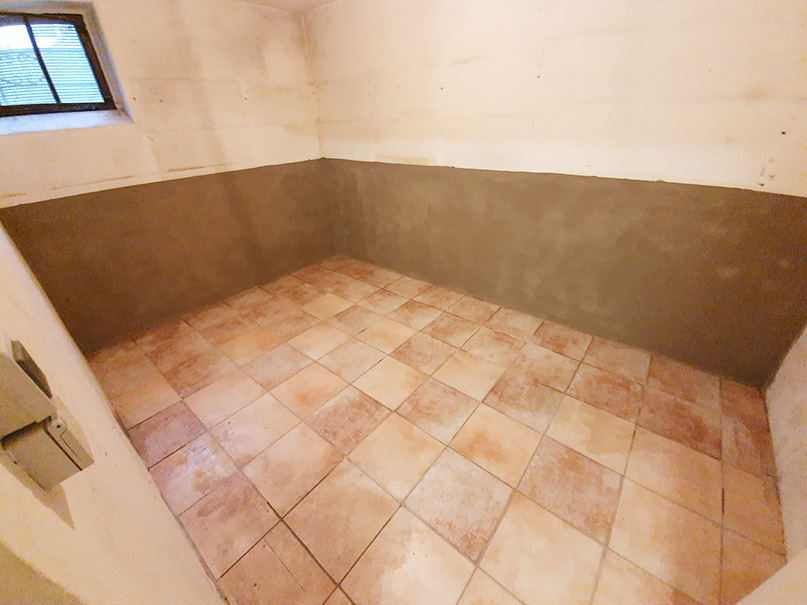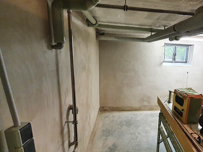 Das 40 cm dicke Mauerwerk wurde mit einer nachträglichen Horizontalsperre und Flächensperre versehen. Eine Negativsperre (Sperrputzsystem) rundet das Sanierungsvorhaben ab.