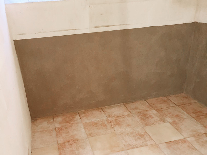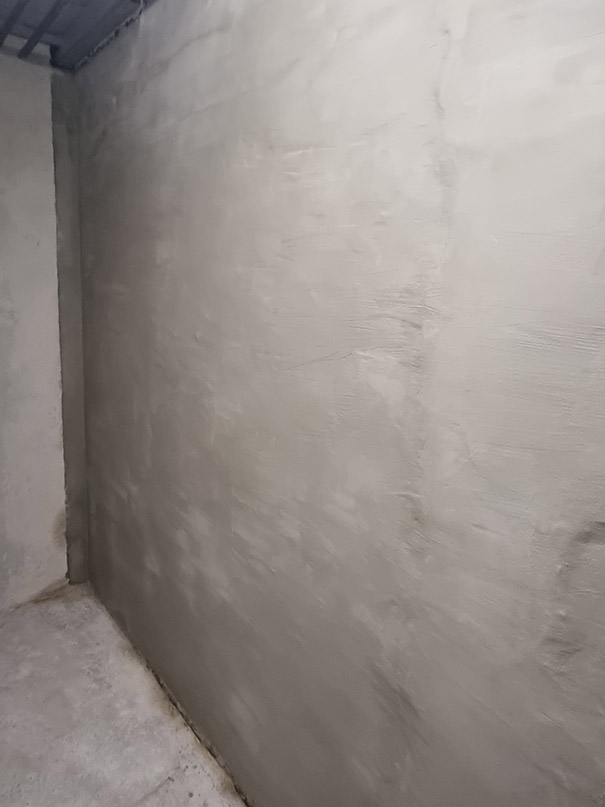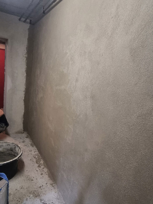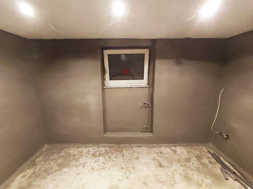 140,00 m² Negativsperre/Sperrputz. Negativabdichtung besteht aus einem speziellen Mehrschichtsystem aus Dichtschlämme, Vorspritzmörtel und Sperrputz.