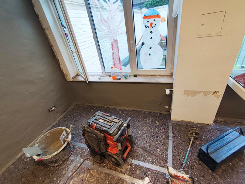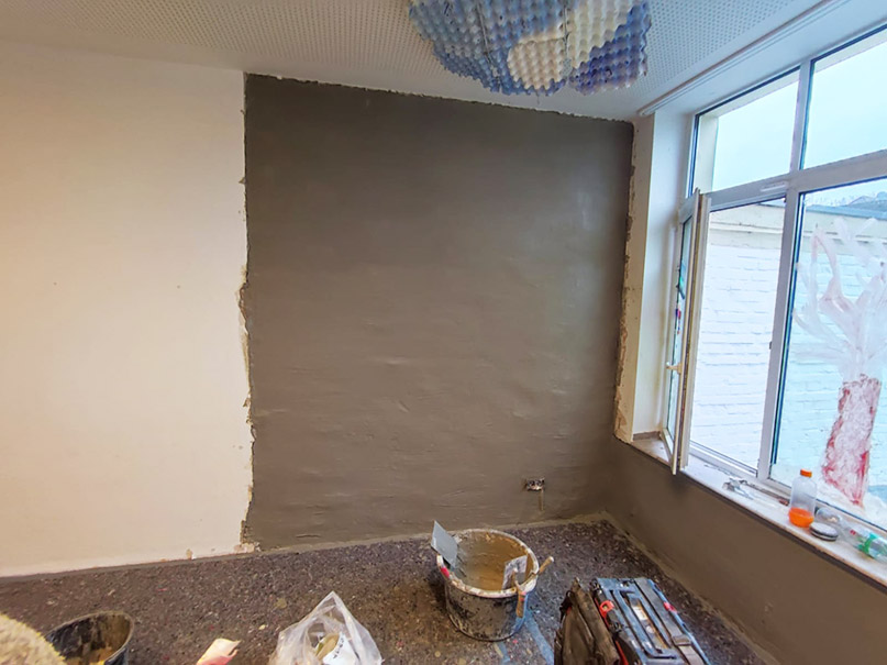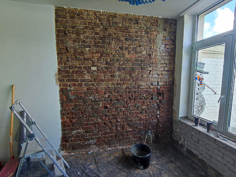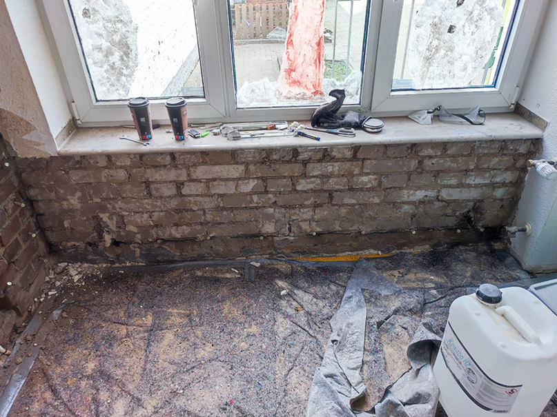 In einem Kindergarten in Neuss soll das Erdgeschoss saniert werden, um eine weitere trockene Spielecke zu schaffen. Das Mauerwerk, soll getrocknet und vor allem von eindringender Feuchtigkeit geschützt werden.