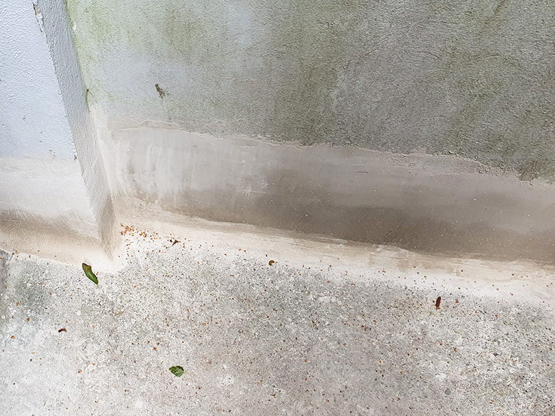 Zwischen der Bodenplatte und dem aufsteigenden Mauerwerk befindet sich eine Boden-/Wandfuge. Wenn nun von außen Druck- oder aufstauendes Sickerwasser ansteht, kann sich dieses Wasser durch die Fuge drücken. Die Lösung ist eine nachträgliche Abdichtung (Wand-Boden-Abdichtung) der durchlässigen Fuge im Sockelbereich mit darauf zertifizierte und gut aufeinander abgestimmte Materialien.