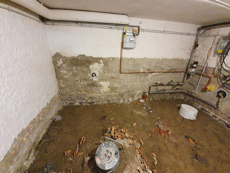 In einem Mehrfamilienhaus nahe Krefeld soll der Keller saniert werden, um neuen Wohnraum zu schaffen. Der gesamte Keller soll getrocknet und vor allem von eindringender Feuchtigkeit geschützt werden.