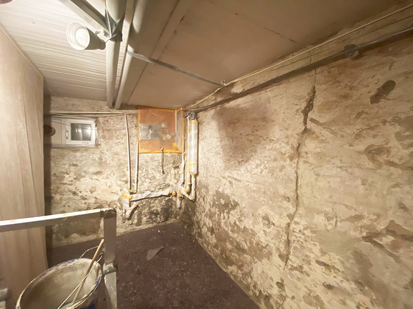 Das 30 – 60 cm dicke Mischmauerwerk wurde mit einer nachträglichen Horizontalsperre und Flächensperre versehen. Die Bodenplatte wurde verpresst und mit einer Hohlkehle gegen drückendes Grundwasser geschützt. Eine Negativsperre (Sperrputzsystem) rundet das Sanierungsvorhaben ab.